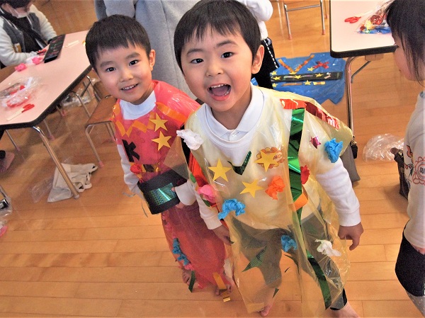発表会で踊った大好きなキラメイジャーとプリキュアをつくりました。衣装は参観日にパパやママと一緒につくりました。衣装を着てすてきに変身!