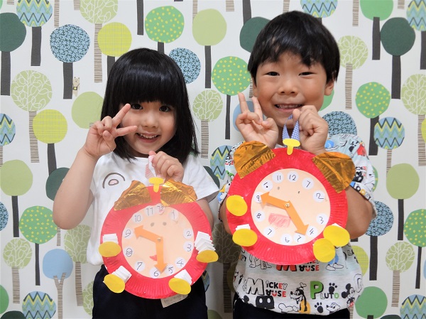 6月10日は時の記念日です。3~5才児は手作りの時計をつくり、時計のお勉強をしました。その日は、時計のランチと時計のホットケーキ♬時計づくしの一日でした!