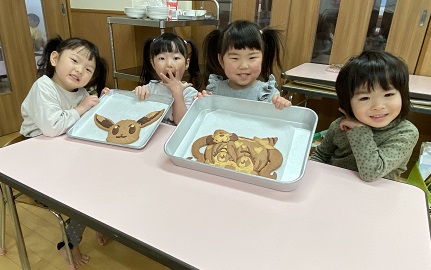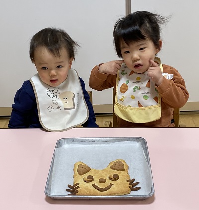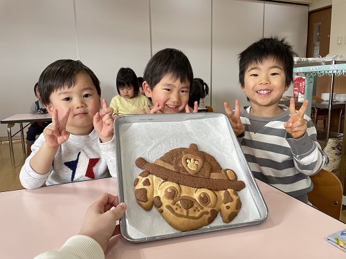 2月14日(火)のおやつでバレンタインクッキーを食べました☆大好きなキャラクターのクッキーに大喜びの子どもたちでした!